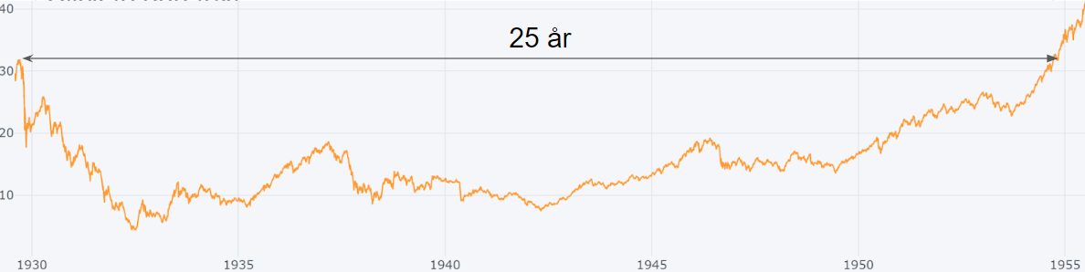 Man måste alltså kunna hålla index väldigt länge för att säkerställa en avkastning som inte är negativ.