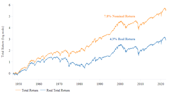 För att uppnå den genomsnittliga avkastningen om 10% per år, krävs en tidshorisont som troligen är längre än ens egna liv.