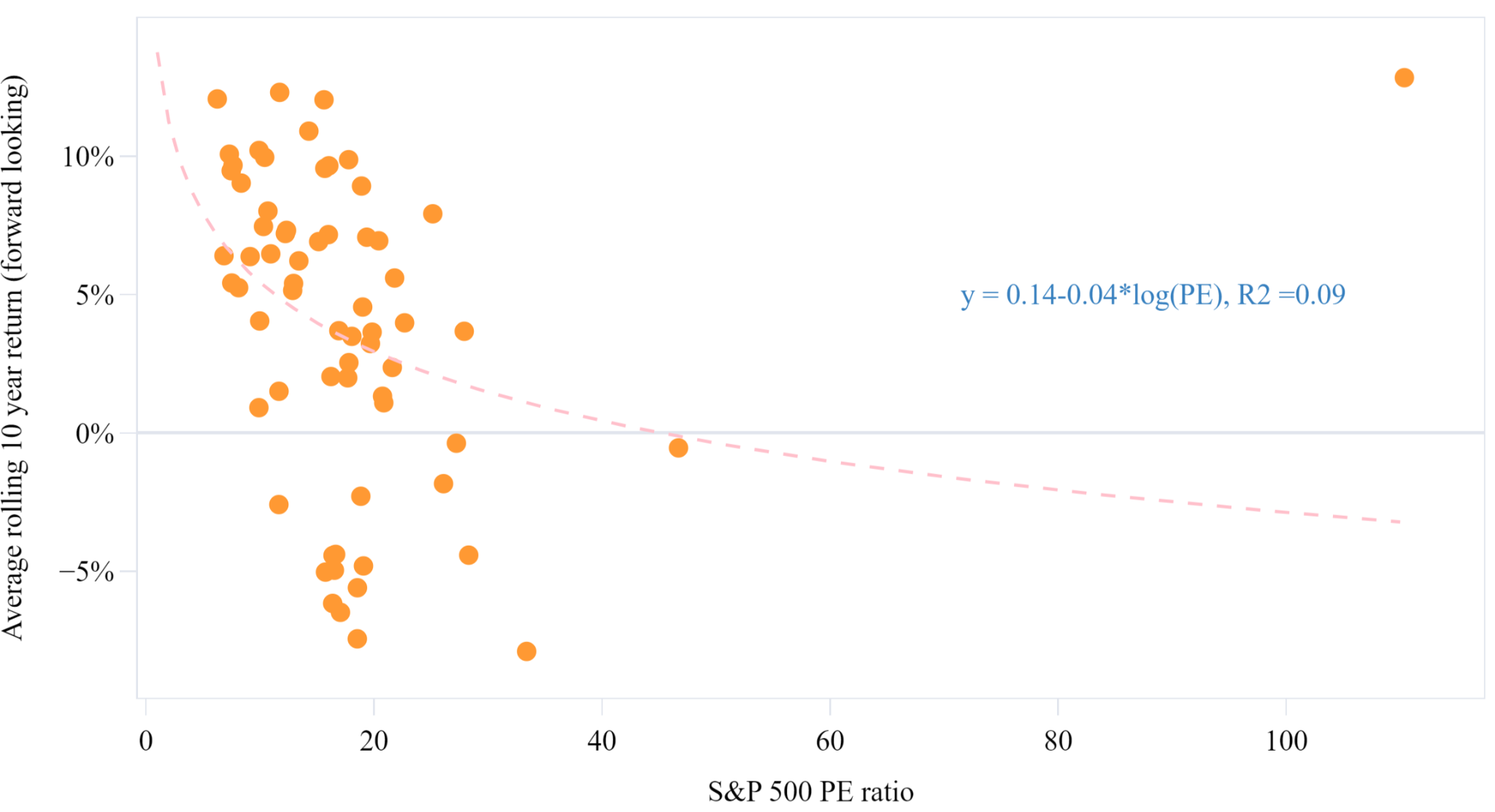 Generellt sett kan vi säga; desto lägre värdering, desto högre förväntad avkastning de kommande 10 åren.