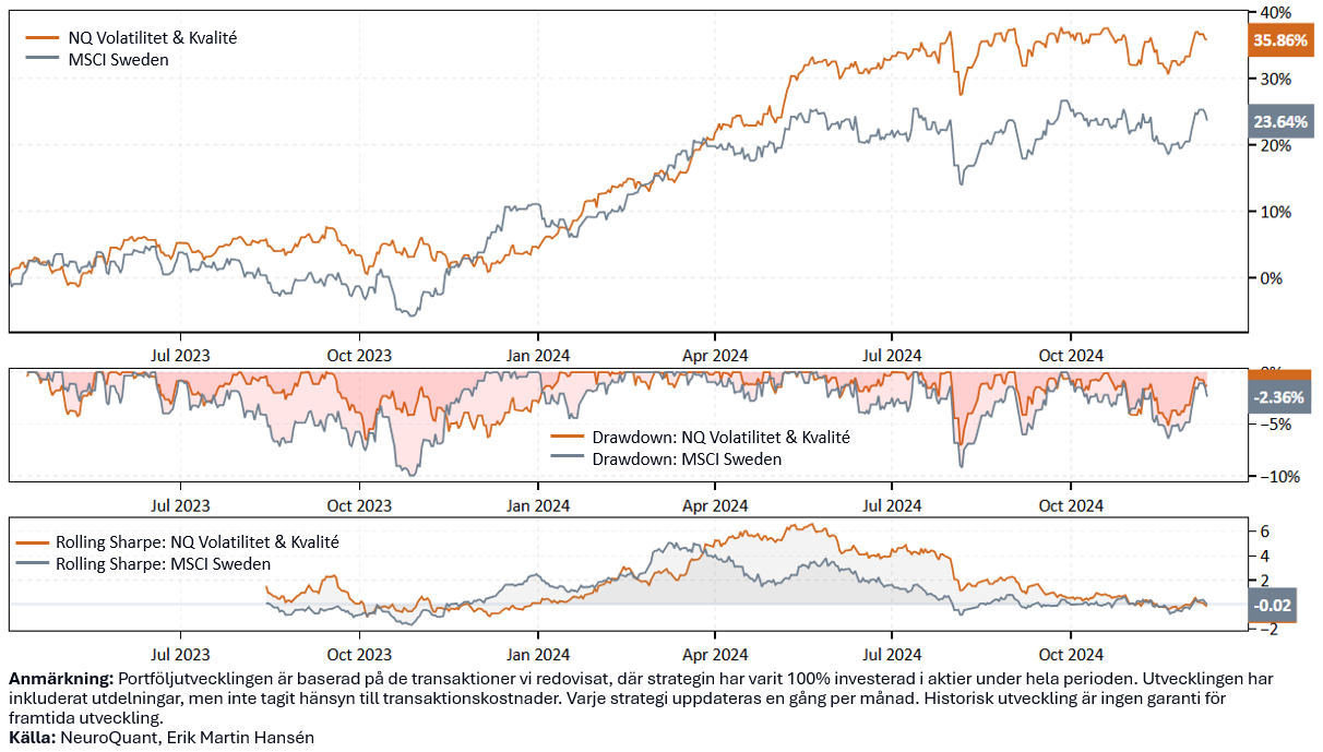 Volatilitet & Kvalité | 35.9% | 1.32 | 11.3% | -7.3% | 0.46 | 0.66 | 10.8% |