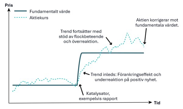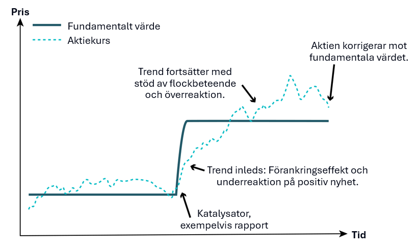 Något som forskningen länge har lyft fram är att investerare tenderar att underreagera på ny information, vilket skapar en drift i aktien. Detta brukar kallas för Post–earnings-announcement drift.